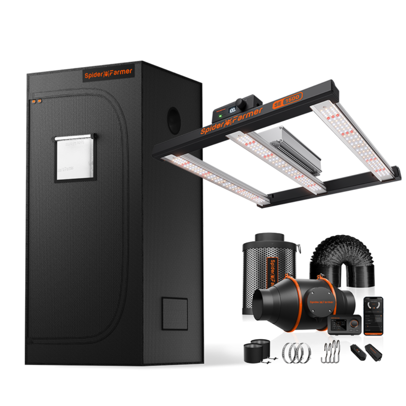 Spider Farmer SET SE1500 je plne automatizovaná pestovateľská zostava navrhnutá pre každého, kto chce mať pod kontrolou celý rastový cyklus rastlín v domácich podmienkach. Vhodné pre začiatočníkov aj pokročilých. Obsahuje plnospektrálne LED pestovateľské svetlo SE1500, pestovateľský stan 70×70×160 cm, výkonnú ventiláciu s uhlíkovým filtrom a inteligentné riadenie Spider Farmer GGS Controller.