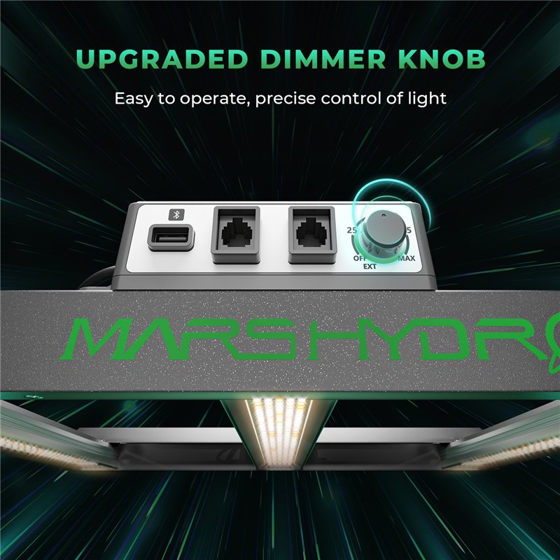 Svetlo MARS HYDRO FC-E 1000W zaisťuje dokonale rovnomerné osvetlenie vďaka inovatívnym odnímateľným lištám, ktoré sa šikovne prispôsobujú jednotlivým fázam rastu rastlín. S integrovaným stmievačom umožňuje jednoduchú reguláciu intenzity svetla a poskytuje možnosť prepojenia až 20 svetiel.
