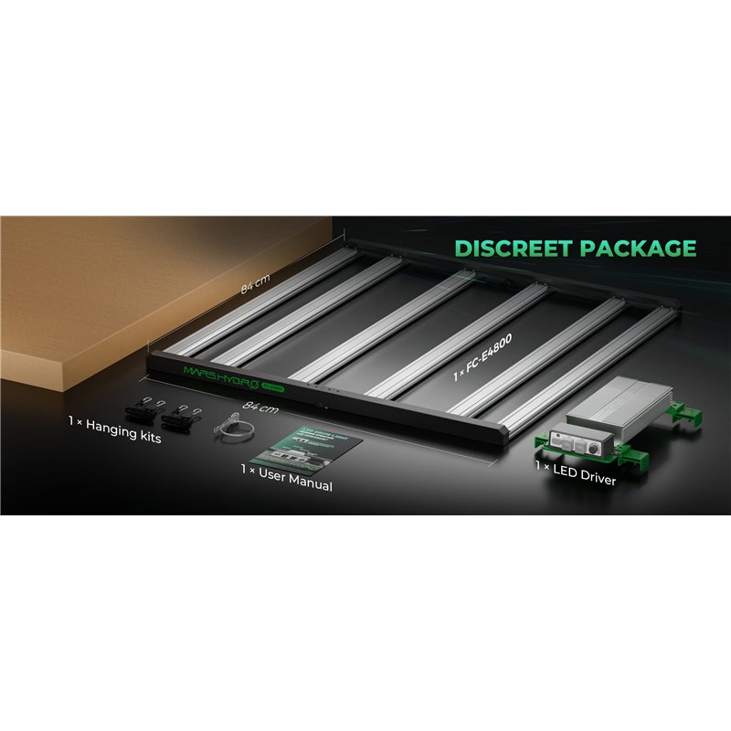 LED GROW svietidlo MARS HYDRO FC-E 4800 so spotrebou 480W využíva LED diódy značky BridgeLux. Svetlo je veľmi intenzívne, vďaka veľkému množstvu LED diód. Ramená môžete posúvať a svit prispôsobiť konkrétnym požiadavkám. Vodeodolnosť IP65 zabráni poškodeniu vo vlhkom prostredí.Dostupné Bluetooth a prepojenie s aplikáciou Mars Hydro.