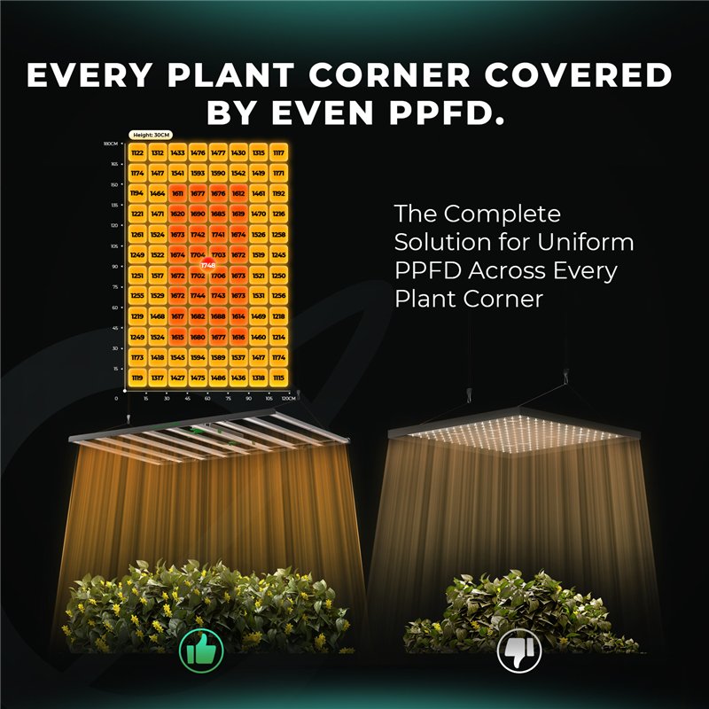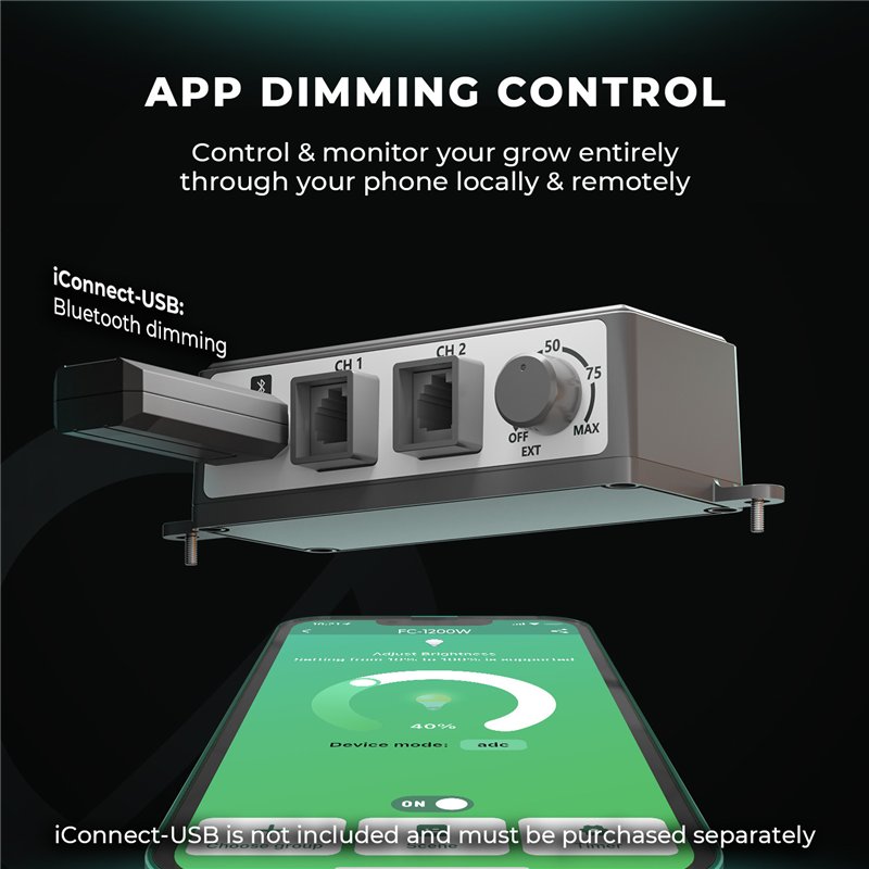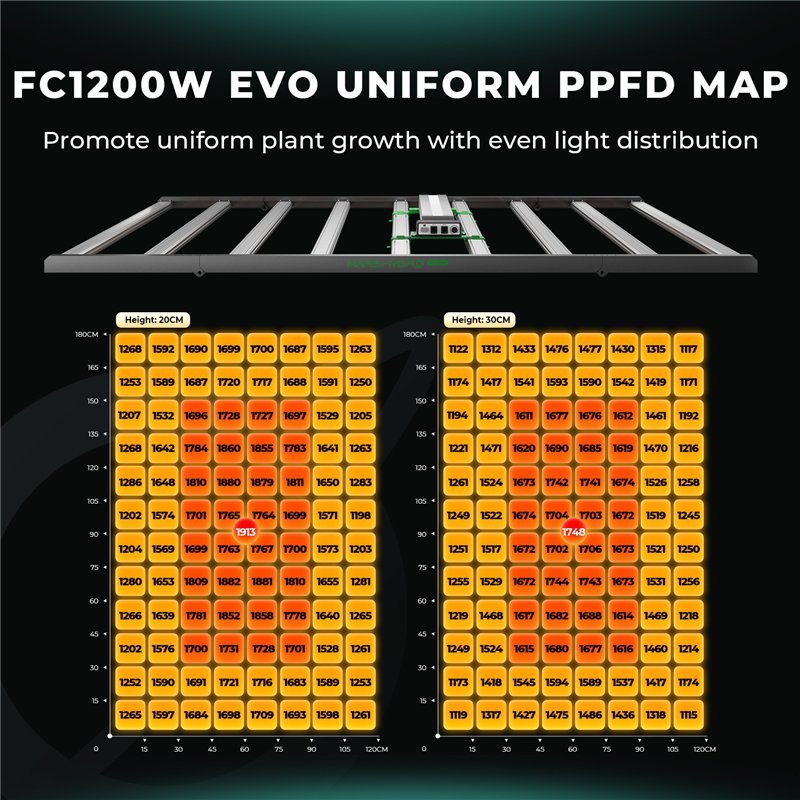 LED GROW svietidlo MARS HYDRO FC 1200W-EVO so spotrebou 1200W využíva LED diódy značky Samsung LM301H EVO. Svietidlo používa na chladenie hliníkový chladič, ktorý zabráni prehriatiu a nezaťažuje prostredie hlukom. Rozloženie svetla zaisťuje rovnomerný rast rastlín. Vďaka aplikácii môžete ovládať svietidlo na diaľku. Dáta sa prenášajú pomocou technológie OTA (Over The Air). Svetlo má funkciu automatického stmievania. Môžete si ho prispôsobiť tak, aby intenzita svetla zodpovedala vášmu plánu. Obsahuje kombináciu modrého, červeného a zeleného svetla na podporu optimálneho rastu rastlín.