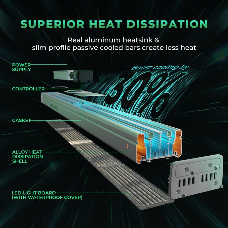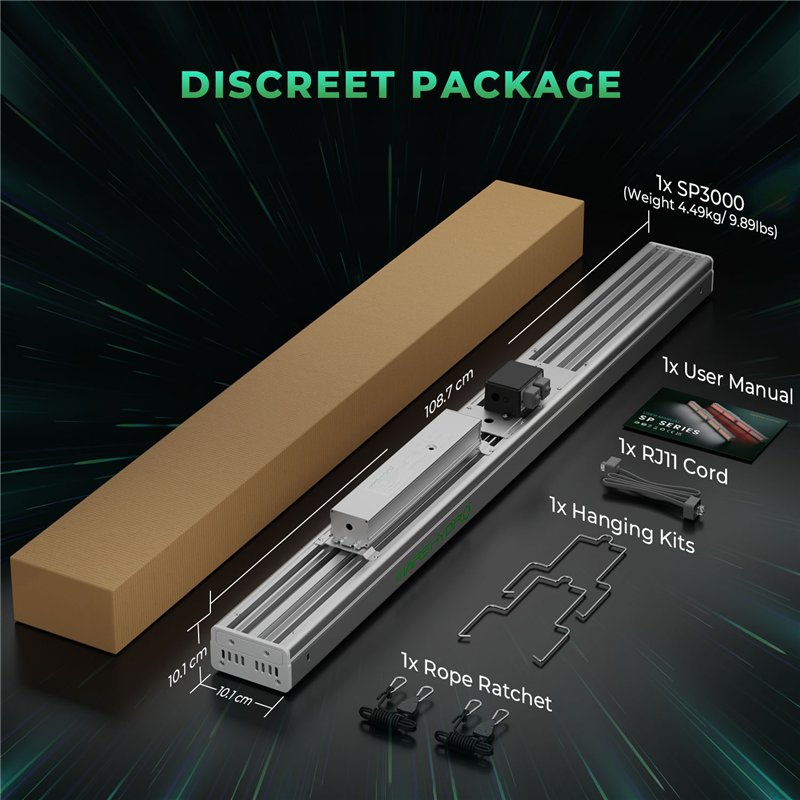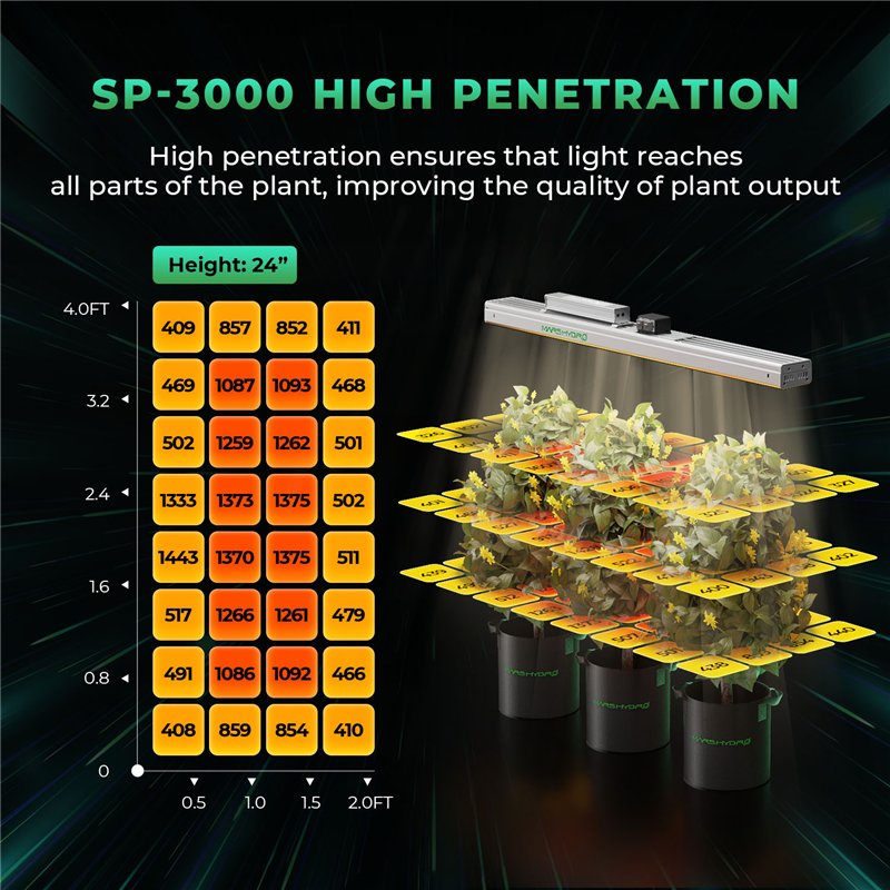 LED GROW svietidlo MARS HYDRO SP3000 využíva 960 LED diód značky Samsung LM301B a Osram 660nm.Zariadenie používa na chladenie hliníkový chladič, ktorý spoľahlivo zabráni prehriatiu a nezaťažuje prostredie hlukom.LED svietidlá vytvárajú biely prísvit, ktorý lepšie simuluje prírodný svit a dodáva rastlinám lepšie podmienky. Vodeodolnosť IP65 zabráni poškodeniu vo vlkom prostredí.