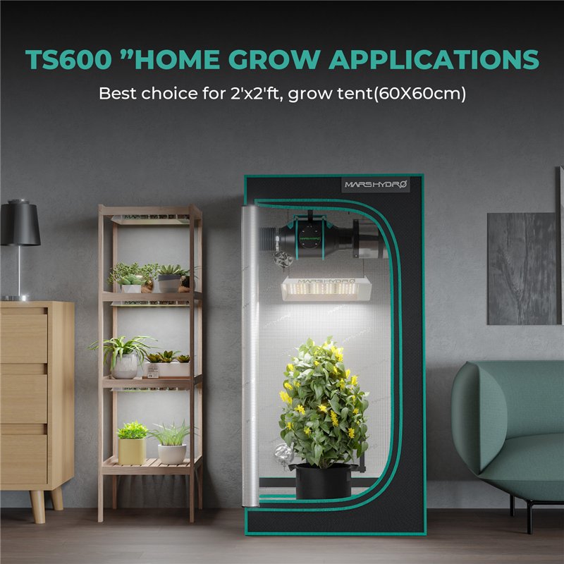 LED GROW svietidlo MARS HYDRO TS600 využíva LED diódy značky BridgeLux.Zariadenie používa biele LED diódy, ktoré lepšie simulujú prírodné svetlo a dodávajú rastlinám potrebné živiny. Zároveň sú tieto diódy menej náročné na spotrebu, preto zariadenie nemusí využívať hlučný vetrák na chladenie. Absencia vetráka tiež zníži hmotnosť. Reflexný dizajn svietidla zariadi rozptyl svetla a tiež jeho intenzitu.