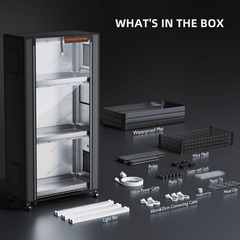 Spider Farmer 4-poschodový pestovateľský stojan je perfektné riešenie pre domáce záhrady aj malé priestory. Ponúka 4 nastaviteľné police so zabudovaným 220W svetlom, pevný stan z odolnej Oxford tkaniny a priehľadné dvere pre jednoduché sledovanie rastlín. Podporuje zdravý rast po celý rok a umožňuje pestovať kvety, bylinky alebo sadenice.