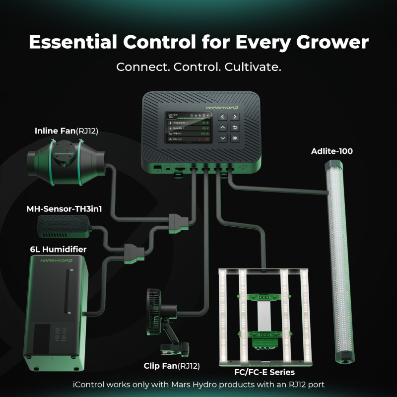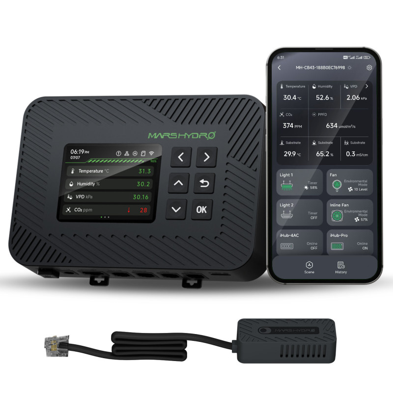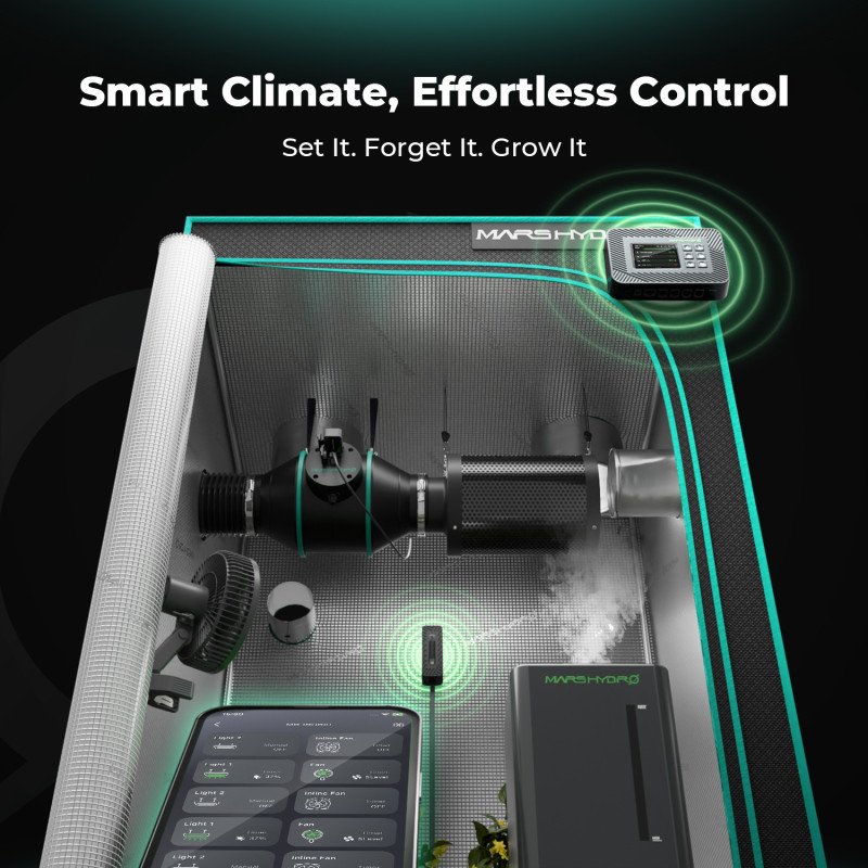 Moderný a inteligentný ovládač, ktorý plne automatizuje pestovateľské prostredie – od svetla cez teplotu a vlhkosť až po ventiláciu. Vďaka senzorom, monitorovaniu VPD a prepojeniu s ventilátormi, zvlhčovačmi aj až 40 LED svetlami zabezpečuje presné, stabilné a energeticky efektívne podmienky pre všetky rastové fázy rastlín. Všetko je možné pohodlne ovládať na diaľku cez aplikáciu.