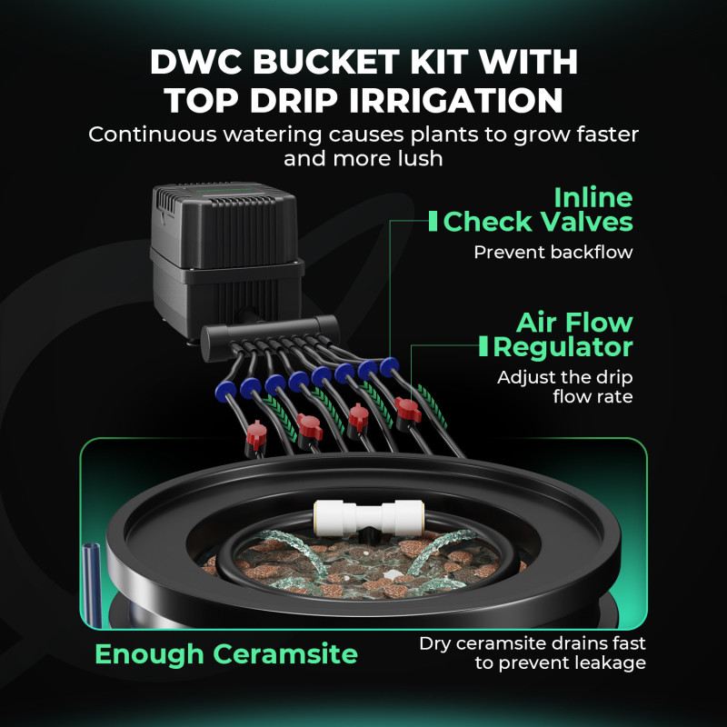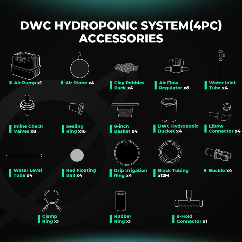 Hydroponický systém Mars Hydro je vhodný pre 4 rastliny, ideálny pre indoor aj outdoor pestovanie. Obsahuje robustné kvetináče, vzduchové čerpadlo, kvapkovú závlahu a koše pre zdravý rast koreňov. Umožňuje celoročné pestovanie čerstvej a vitálnej zeleniny a byliniek.