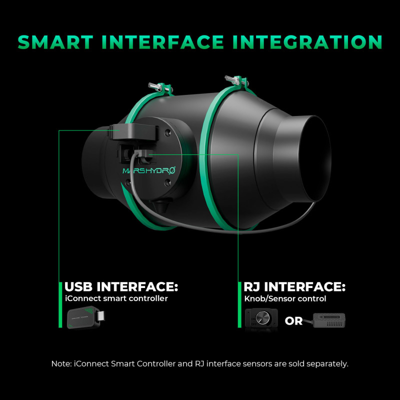 Súčasťou sady je doplniteľný uhlíkový filter, ktorý dlhodobo a účinne odstraňuje pachy. Ventilátor sa štandardne ovláda pomocou otočného regulátora rýchlosti, ale je možné ho jednoducho rozšíriť o USB ovládanie a prepojiť s aplikáciou MarsPro App.
